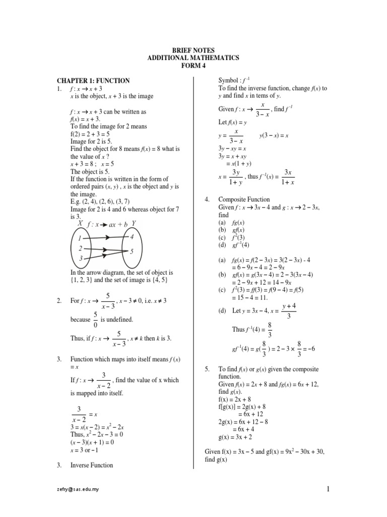 Brief Notes Additional Mathematics Form 4 Symbol F 1 To Find The Inverse Function Change F X To Y And Math Notes Mathematics Form 4 Inverse Functions