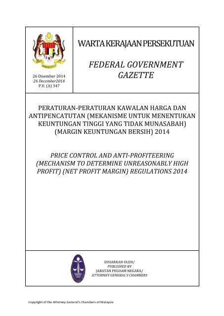 Pua 20141226 P U A 347 Peraturan Peraturan Kawalan Harga Dan Antipencatutan