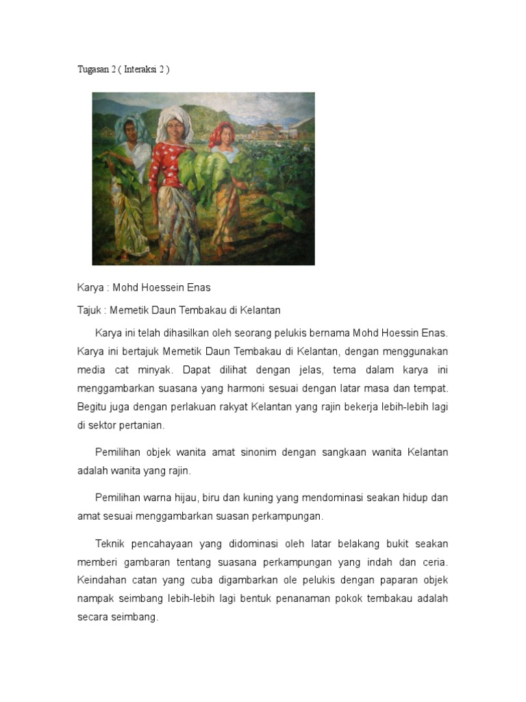 Memetik Daun Tembakau Di Kelantan Mohammad Hoessein Enas Lukisan Pelukis