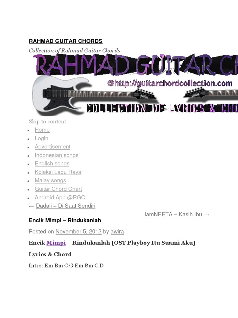Encik Mimpi Rindukanlah Guitar Chords Guitar Chords Explorer