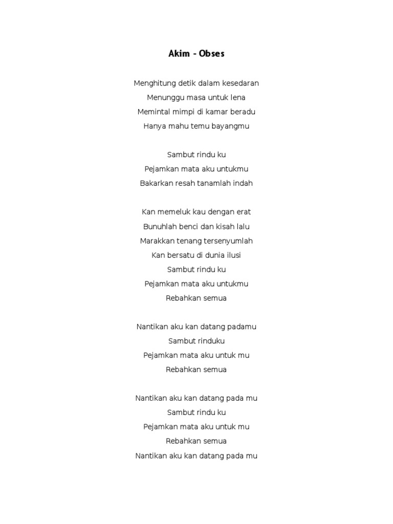 Akim The Majistret Obses Lirik Koleksi Lirik Lagu Melayu Dan Inggeris