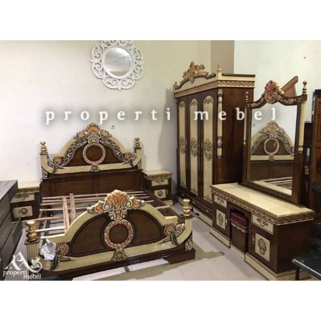 Set Furniture Kamar Tidur Levina Ukir Kayu Jati Mebel Kamar Tidur Shopee Indonesia